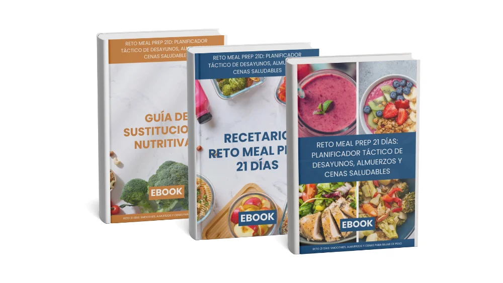 Reto Meal Prep 21D: Sistema en 3 fases para organizar tus desayunos, almuerzos y cenas saludables por adelantado. Ideal para bajar de peso, comer bien sin estrés y mantener tu rutina saludable sin cocinar todos los días.